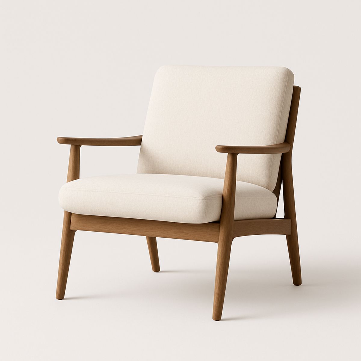 Banco com assento capitonado branco e pernas torneadas, para hall ou quarto.